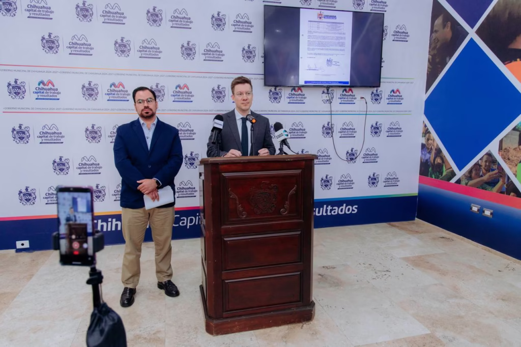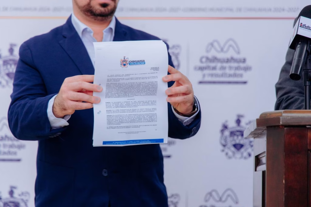 Chihuahua, Chih.- Ante los señalamientos difundidos por el Instituto Mexicano del Seguro Social (IMSS) el día de ayer sobre la donación de un terreno para la construcción de un nuevo hospital para la capital, el secretario del Ayuntamiento de Chihuahua, Roberto Fuentes Rascon, junto con el licenciado Luis Morales, aseguró en rueda de prensa que la operación se realizó con pleno apego a la legalidad y garantiza la seguridad jurídica.