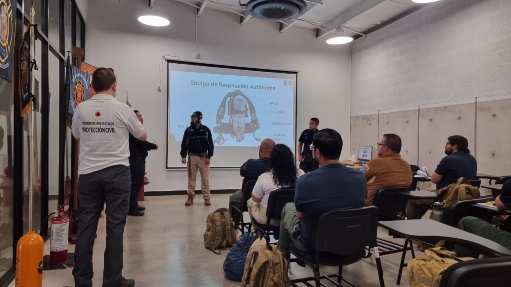 H. Ciudad de Chihuahua, Chih. A 25 septiembre de 2025.- Instructores de Bomberos del Instituto Superior de Seguridad Chihuahua (ISSCUU), impartieron una capacitación a personal de la Coordinación Estatal de Protección Civil sobre diversas temáticas referentes a la atención de incidentes, con la finalidad de que ambas corporaciones tengan una colaboración más estrecha.