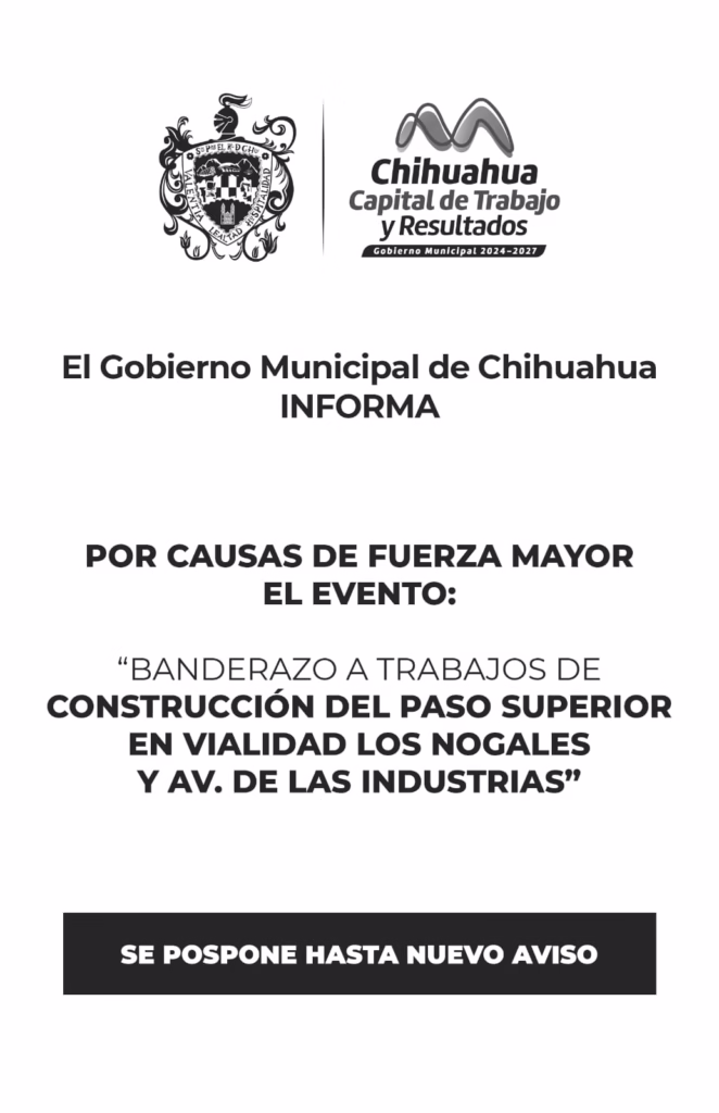 Bonilla informó que, como muestra de respeto y solidaridad ante el momento que atraviesa la gobernadora y sus seres queridos, el inicio simbólico de la construcción del nuevo puente en vialidad Los Nogales y avenida de Las Industrias -al cual ella estaba invitada- fue pospuesto para una fecha próxima dentro de esta misma semana. Aclaró que los trabajos en campo ya comenzaron, y que aunque únicamente el acto protocolario será reagendado.