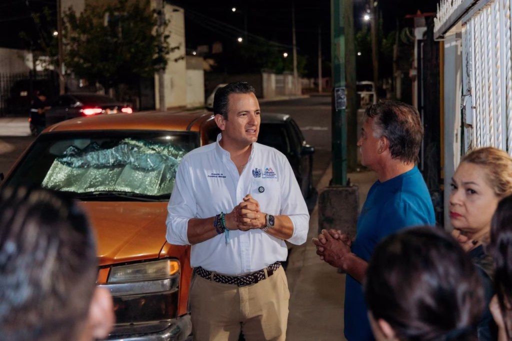 H. Ciudad de Chihuahua, Chih., a 7 de octubre de 2025.- El alcalde Marco Bonilla, recorrió calles de la colonia Los Olivos, para supervisar el funcionamiento del reciente cambio de luminarias a luz LED, la seguridad de la zona y las calles.Junto al director de Seguridad Pública Municipal, Julio Salas; el director de Obras Públicas, Carlos Rivas, así como personal de la Dirección de Mantenimiento Urbano, tocaron las puertas de diversos hogares para dialogar con los vecinos y conocer sus necesidades.