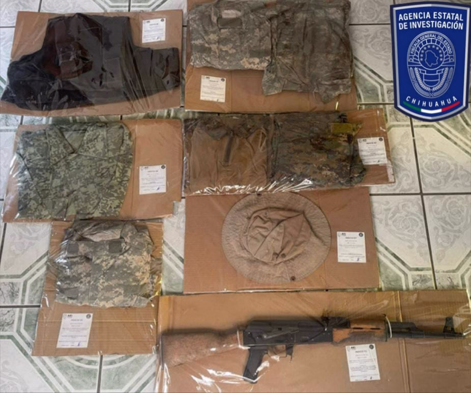 Tras una inspección pedestre, los efectivos encontraron un fusil calibre 7.62×39, dos conjuntos de ropa táctica con patrones de camuflaje verde tipo militar y dos camisolas pixeladas, así como un chaleco porta placas de color negro.