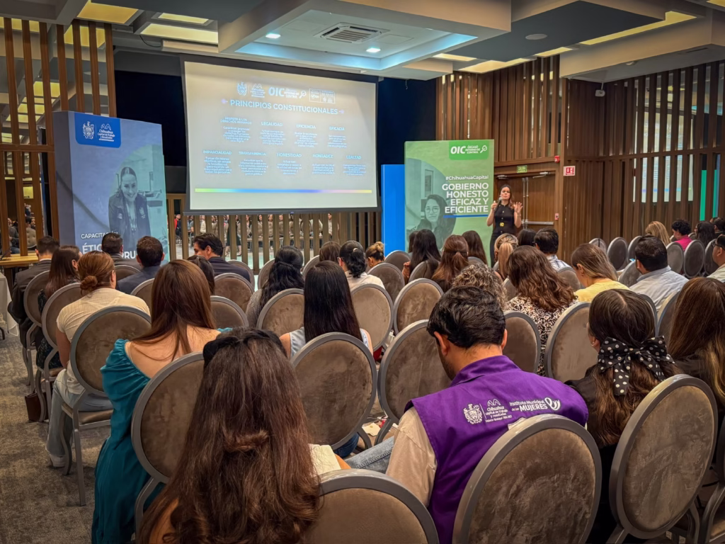 H. Ciudad de Chihuahua, Chih., a 15 de octubre de 2025.- El Órgano Interno de Control (OIC) del Gobierno Municipal, capacitó a personal de otras dependencias en materia de ética pública y promoción de una administración libre de actos de corrupción.
