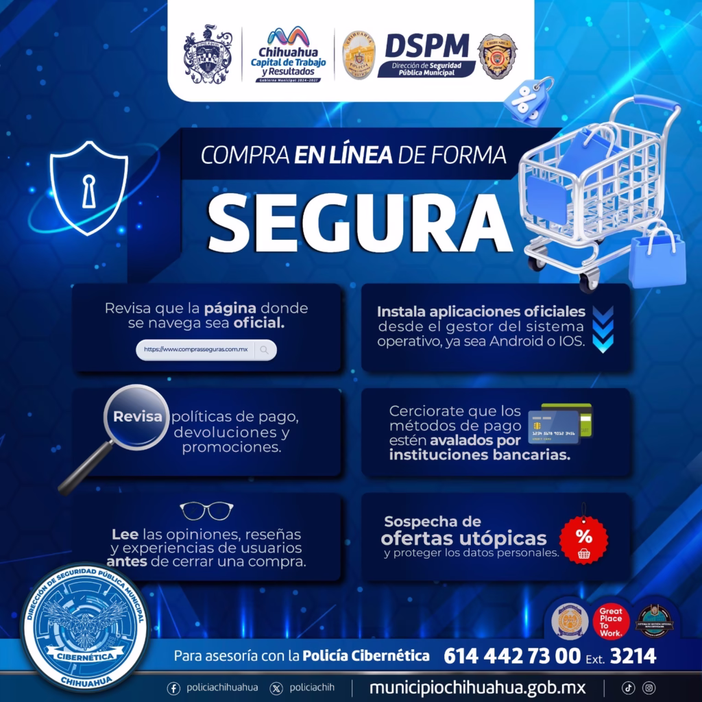 H. Ciudad de Chihuahua, Chih., a 17 de octubre del 2025.- La Policía Cibernética de la Dirección de Seguridad Pública Municipal, comparte recomendaciones para evitar que las y los chihuahuenses sean víctimas de fraudes en páginas en línea o bien, diferentes redes sociales.La analista de la Policía Cibernética, Edith Rodríguez, dio a conocer que los ciberdelincuentes, crean perfiles o páginas falsas, en redes sociales para ofrecer algún tipo de producto o servicio, en su mayoría a través de la aplicación WhatsApp, en donde solicitan un anticipo y una vez que se efectúa, desaparecen.