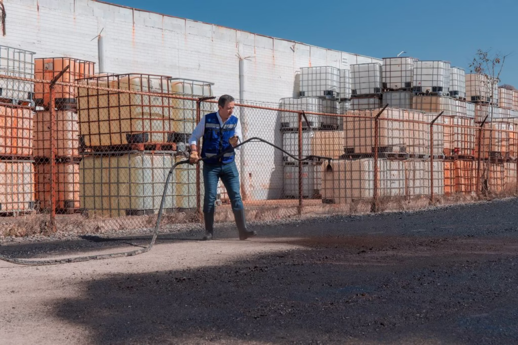 Los trabajos en esta calle iniciaron con la compactación del suelo y emparejado, para luego rociarlo con chapopote líquido, el vaciado del concreto para los cordones y finalmente el concreto hidráulico a lo largo de la calle.