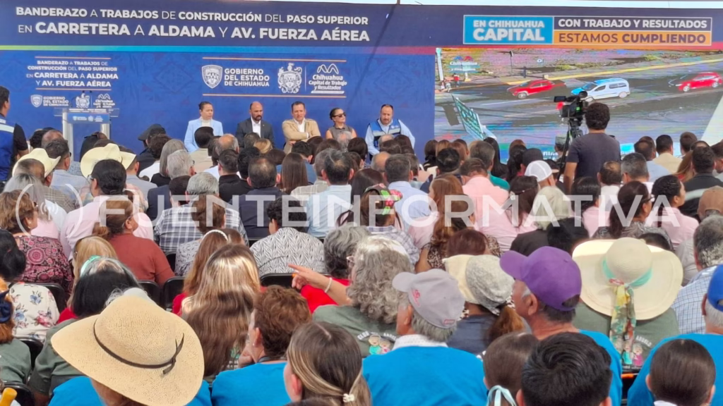 Chihuahua, Chih.- El alcalde Marco Antonio Bonilla Mendoza dio este jueves el banderazo oficial para el inicio de la construcción del paso superior en la intersección de la carretera Chihuahua–Aldama y avenida Fuerza Aérea, una de las obras más esperadas de la actual administración que busca mejorar la movilidad hacia la zona oriente y el aeropuerto de la ciudad.