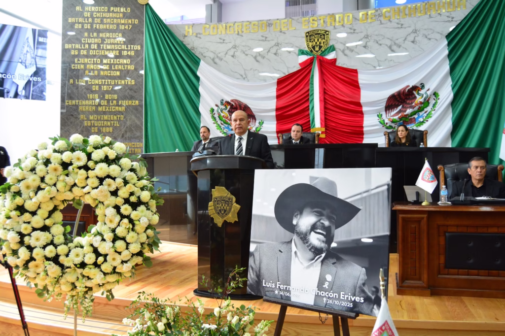 Este 28 de octubre, el Congreso del Estado de Chihuahua, llevó a cabo Sesión Solemne de Homenaje Póstumo en memoria del diputado Luis Fernando Chacón Erives, representante del distrito 13 con cabecera en Guerrero; distinguido legislador, servidor público y ser humano comprometido con el sector ganadero y el campo chihuahuense, siempre entregado a su comunidad. El acto solemne estuvo encabezado por representantes de los Tres Poderes del Estado.