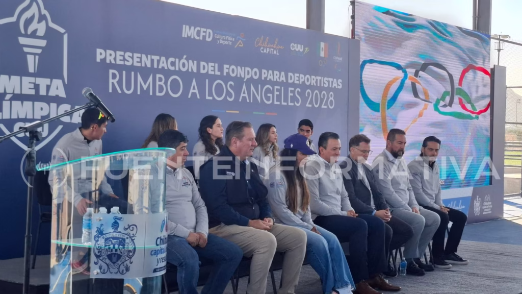 Chihuahua, Chih.- Esta mañana, el alcalde Marco Antonio Bonilla Mendoza encabezó la presentación del Fondo Deportivo de Alto Rendimiento “Meta Olímpica CUU”, una estrategia destinada a respaldar la preparación de atletas locales con aspiraciones a representar a la capital en los próximos Juegos Olímpicos y Paralímpicos de Los Ángeles 2028.