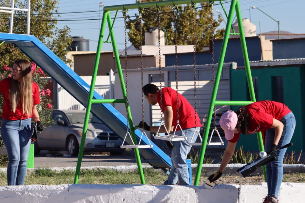 H. Ciudad de Chihuahua, Chih., a 10 de noviembre de 2025.- Buscando la felicidad y sonrisas de las niñas y niños de Riberas de Sacramento, el Gobierno Municipal en colaboración con la cadena comercial OXXO, rehabilitaron el parque Volga ubicado en las inmediaciones de la colonia antes mencionada.