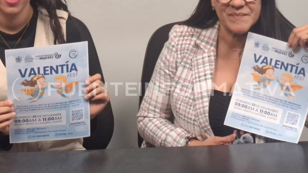 Chihuahua, Chih.- Esta mañana, representantes del Instituto Municipal de las Mujeres (IMM) anunciaron la realización del “Valentía Fest”, una carrera de obstáculos con enfoque familiar que busca concientizar sobre la prevención del abuso infantil, en el marco del Día Internacional de la Eliminación de la Violencia contra las Mujeres.