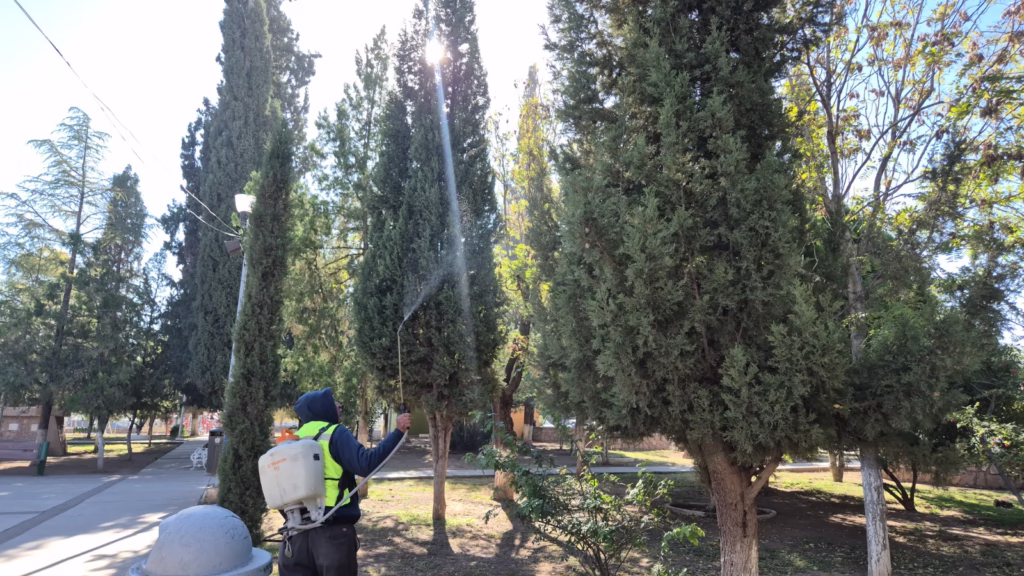 H. Ciudad de Chihuahua, Chih., a 19 de noviembre de 2025.- El Gobierno Municipal, a través de la Dirección de Mantenimiento Urbano, fumiga diariamente parques y espacios públicos de Chihuahua Capital, para que las familias disfruten espacios dignos, seguros y libre de plagas.