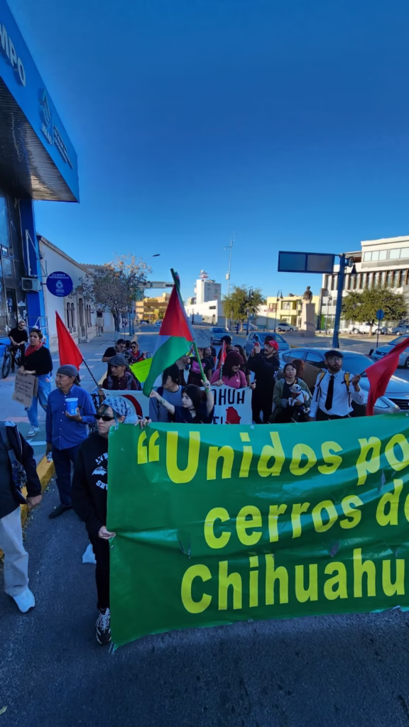 El color predominante no fue el blanco, sino una diversidad de colores. Destacaron las banderas de Palestina, en protesta por los convenios que la Junta Central de Agua y Saneamiento (JCAS) y la Junta Municipal de Agua y Saneamiento (JMAS) han firmado con el Estado de Israel, señalado internacionalmente por crímenes de guerra y genocidio. Ante ello, las organizaciones exigieron romper esas relaciones institucionales: en Chihuahua no se quieren ese tipo de “alianzas”.
