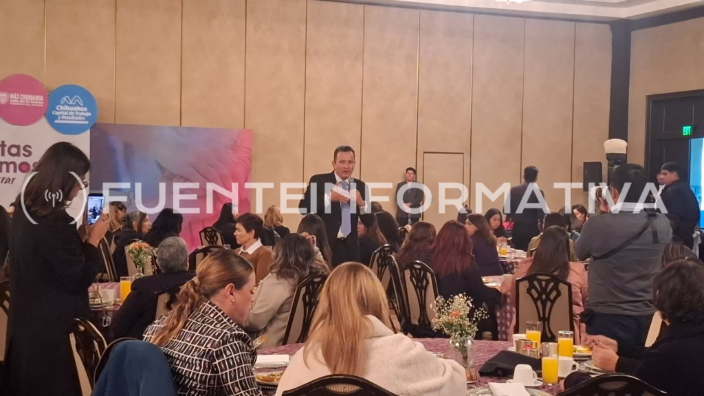 Chihuahua, Chih.- Esta mañana, el alcalde Marco Antonio Bonilla Mendoza, el Instituto Municipal de las Mujeres (IMM) y el Instituto Chihuahuense de las Mujeres sostuvieron un encuentro con más de 200 empresarias y empresarios para presentar información sobre el programa Juntas Podemos Ahorrar, creado en 2016 cuando la gobernadora María Eugenia Campos Galván era presidenta municipal de Chihuahua.