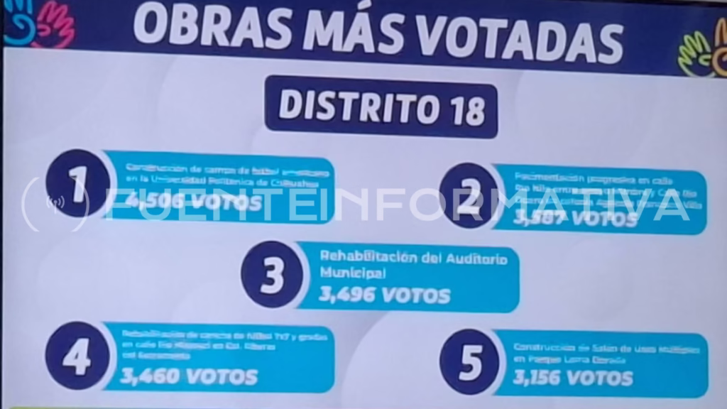 Con la presentación de estos resultados, las autoridades señalaron que continúa el proceso para la validación y programación de las obras seleccionadas, conforme a los lineamientos del Presupuesto Participativo 2026. Se indicó que, una vez concluidas las etapas administrativas correspondientes, se dará seguimiento a la ejecución de los proyectos elegidos por las y los ciudadanos