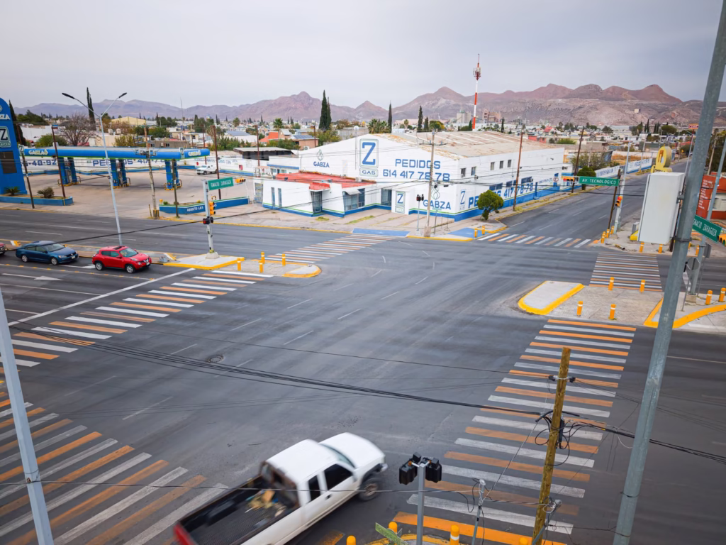 H. Ciudad de Chihuahua, Chih., a 1 de diciembre de 2025.- El Gobierno Municipal, concluyó la construcción y adecuación de un cruce seguro ubicado en la intersección de la avenida Zaragoza y Tecnológico, una de las zonas con mayor afluencia vehicular y peatonal de la ciudad.
