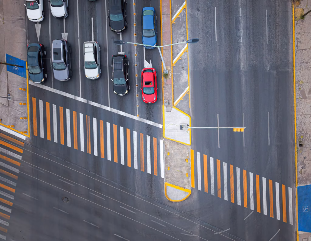Además, se definió un carril confinado para retorno en sentido sur–norte sobre la avenida Tecnológico y se construyeron rampas de acceso en las cuatro esquinas del cruce para facilitar el tránsito de personas con discapacidad.