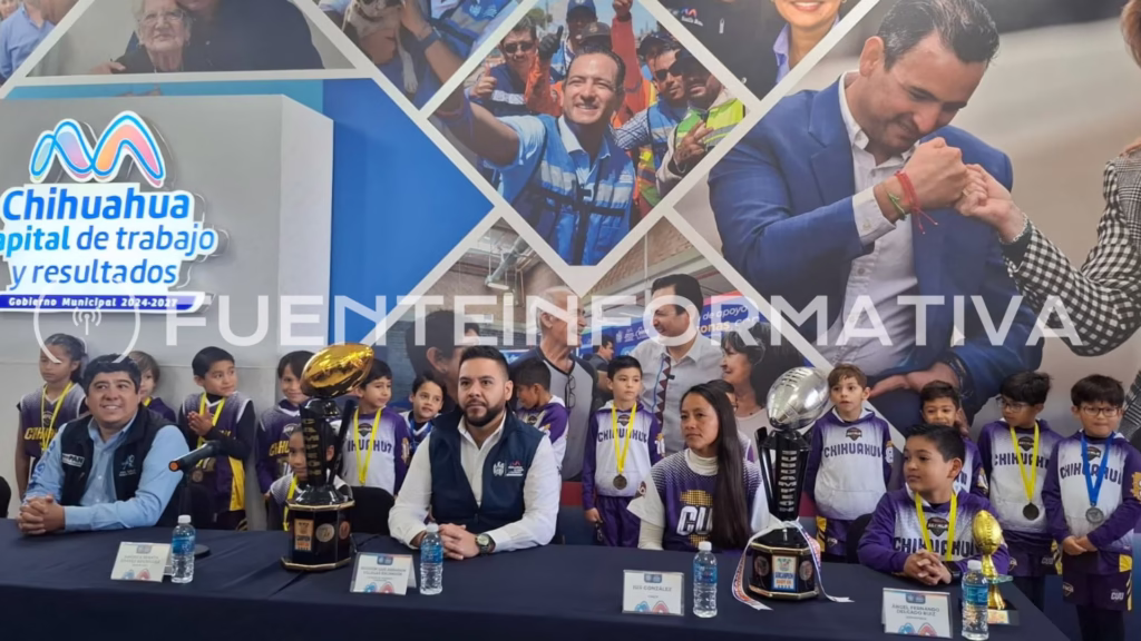 Chihuahua, Chih.- Esta mañana, el Ayuntamiento realizó una rueda de prensa para reconocer a las selecciones infantiles de fútbol que regresaron del torneo celebrado en la Riviera Maya, donde representaron al municipio de Chihuahua y obtuvieron trofeos en sus categoría.