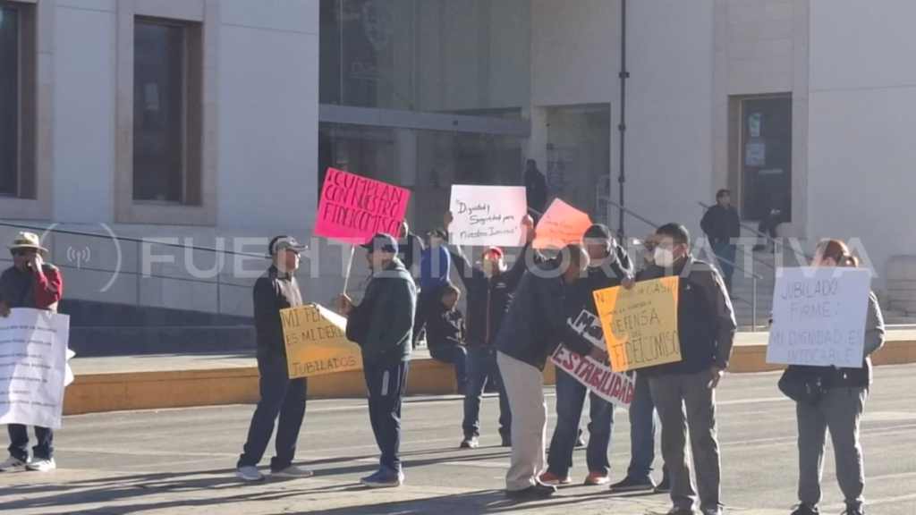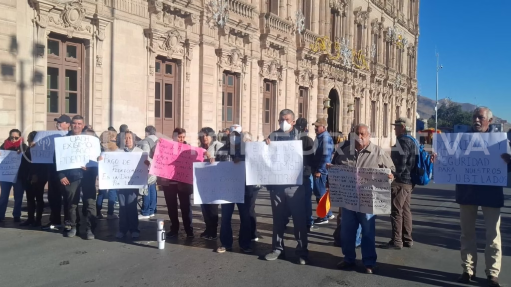 Chihuahua, Chih.- Desde las 7:30 de la mañana, jubilados de la Universidad Autónoma de Chihuahua (UACH) bloquearon varias calles del Centro Histórico, en los alrededores de Palacio de Gobierno y Rectoría, como parte de una manifestación para exigir el pago del fideicomiso y el aguinaldo correspondiente al 30 de noviembre.