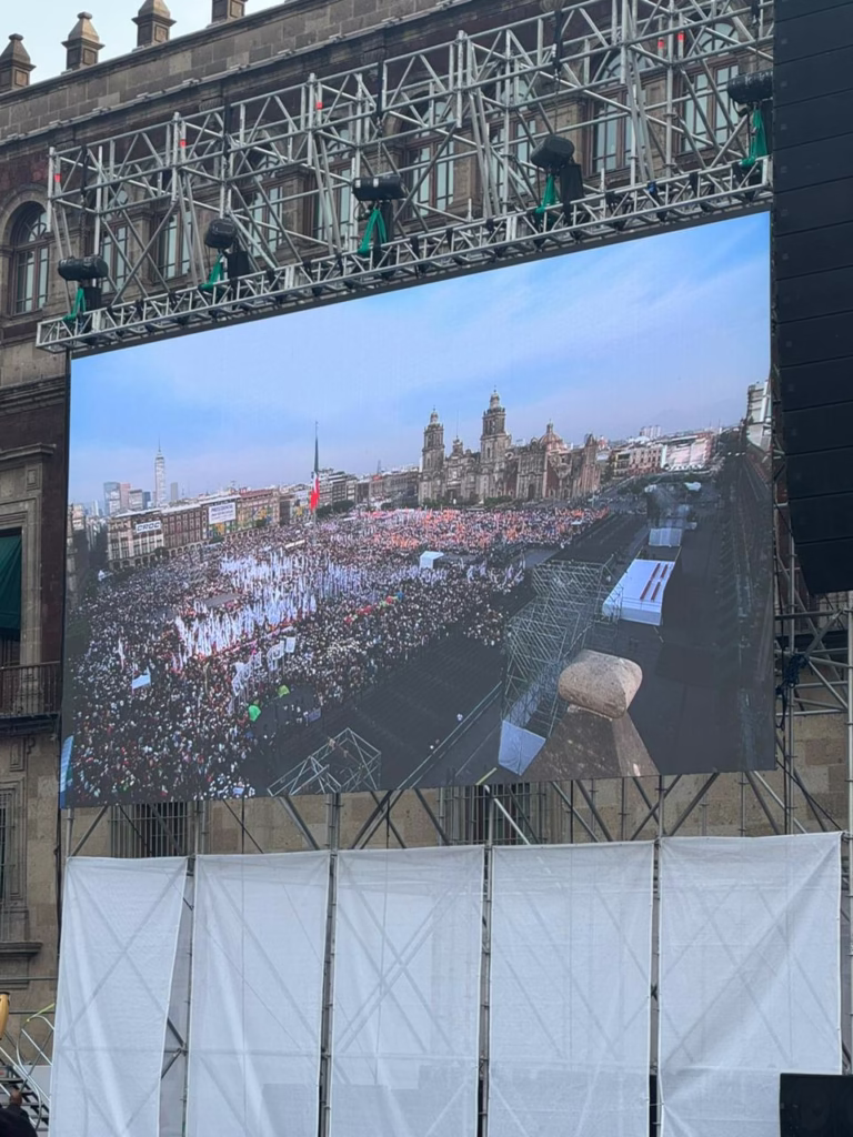 Llegar al Zócalo fue una sacudida al pecho. No hay forma elegante de describirlo. Es sentir que la plaza late, que la gente forma una sola voz y que tú estás ahí, parado en medio de algo enorme. Llegamos temprano para agarrar buen lugar, sí, pero también para no perdernos ni un segundo de todo lo que pasaba: la marcha, la energía, ese momento en que te acomodas firme, esperando la llegada de la presidenta Claudia Sheinbaum Pardo. La historia en frente, literal.