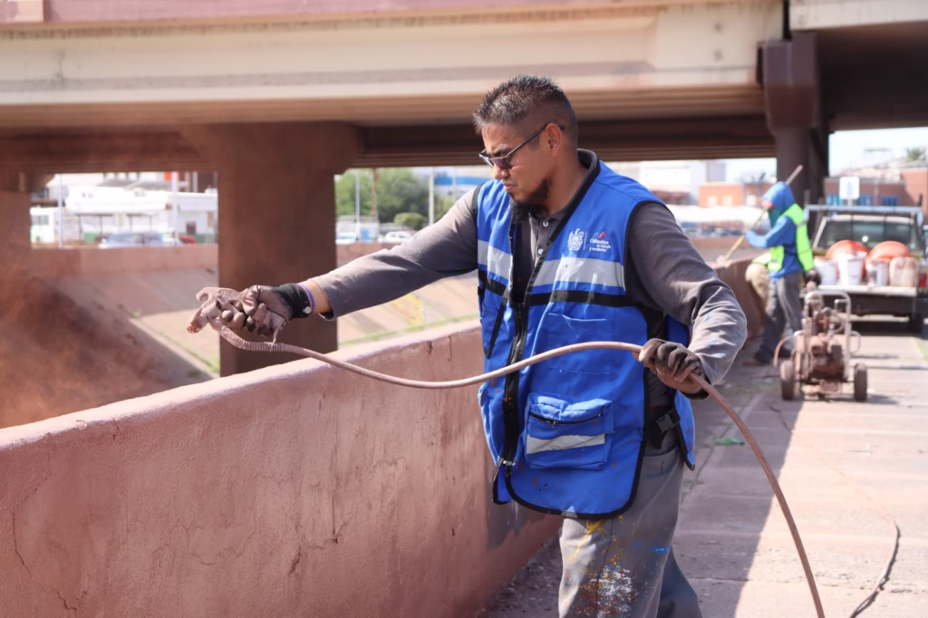 Durante el mismo periodo, el Municipio reforzó el mantenimiento con trabajos de pintura en guarniciones y puentes de vialidades como Teófilo Borunda, La Cantera, Periférico de la Juventud, Las Industrias y Vallarta, además de pasos peatonales en zonas escolares y cruces estratégicos. Estas acciones se complementaron con la atención y conservación de los 140 monumentos emblemáticos que forman parte de la historia y el patrimonio de Chihuahua Capital.
