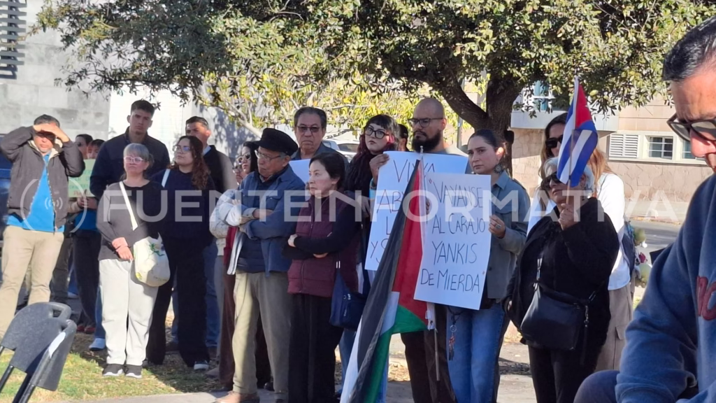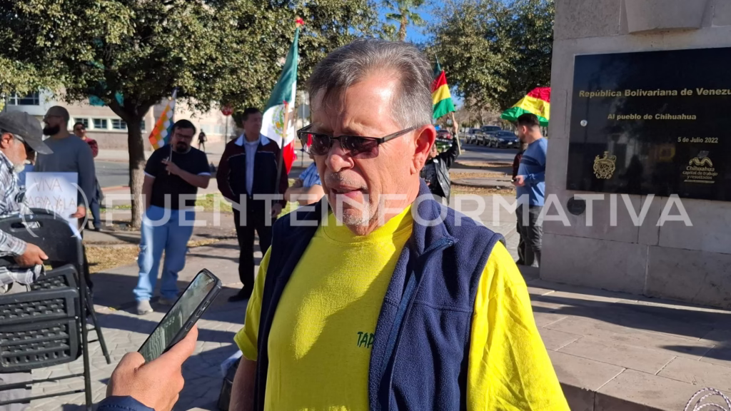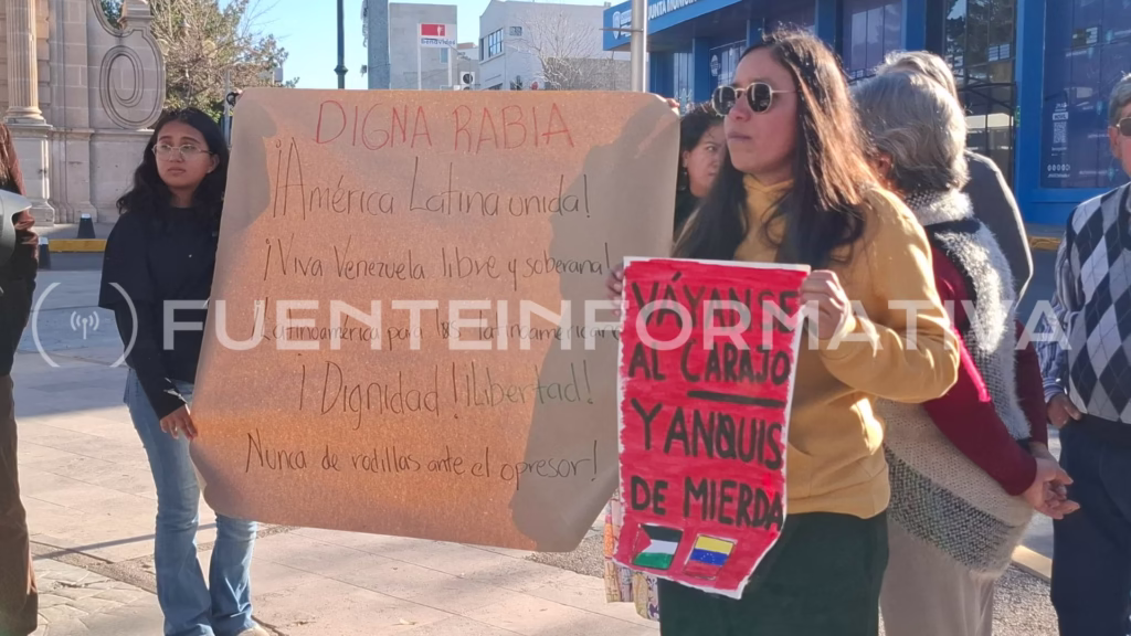 Chihuahua, Chih.- Más de un centenar de personas se manifestaron la tarde de este sábado en el Jardín Simón Bolívar, en el Centro Histórico de la ciudad de Chihuahua, en rechazo a las recientes acciones del gobierno de Estados Unidos en Venezuela.