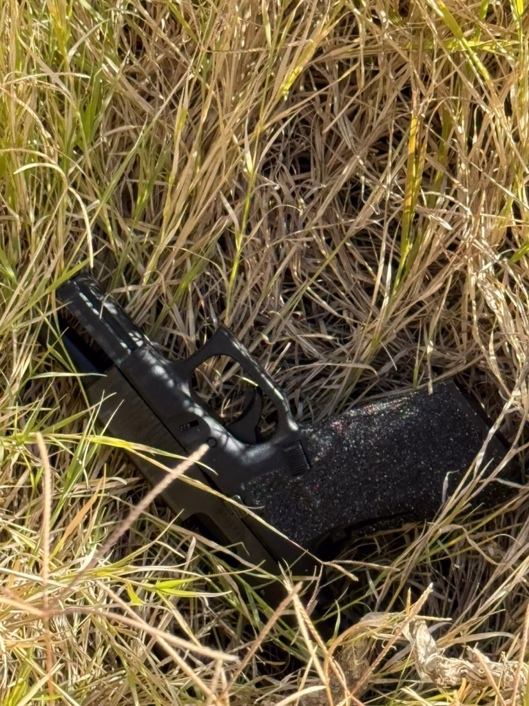 Posteriormente, se desplegó personal del Grupo Especial K9, lo que permitió que uno de los ejemplares caninos, identificado como Acre, localizara otra arma de fuego en un terreno baldío aledaño, área por la que presuntamente huyeron los demás ocupantes del vehículo.