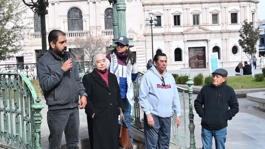 Chihuahua, Chih, 12 enero 2026. El presidente del consejo estatal de morena y regidor, Hugo Eduardo González Muñiz, convocó a la militancia, así como a las y los simpatizantes y ciudadanos en general, a respaldar la postura de la presidenta Claudia Sheinbaum en la defensa de la soberanía nacional, ante las amenazas y agresiones de Estados Unidos contra nuestro país y otros pueblos soberanos.