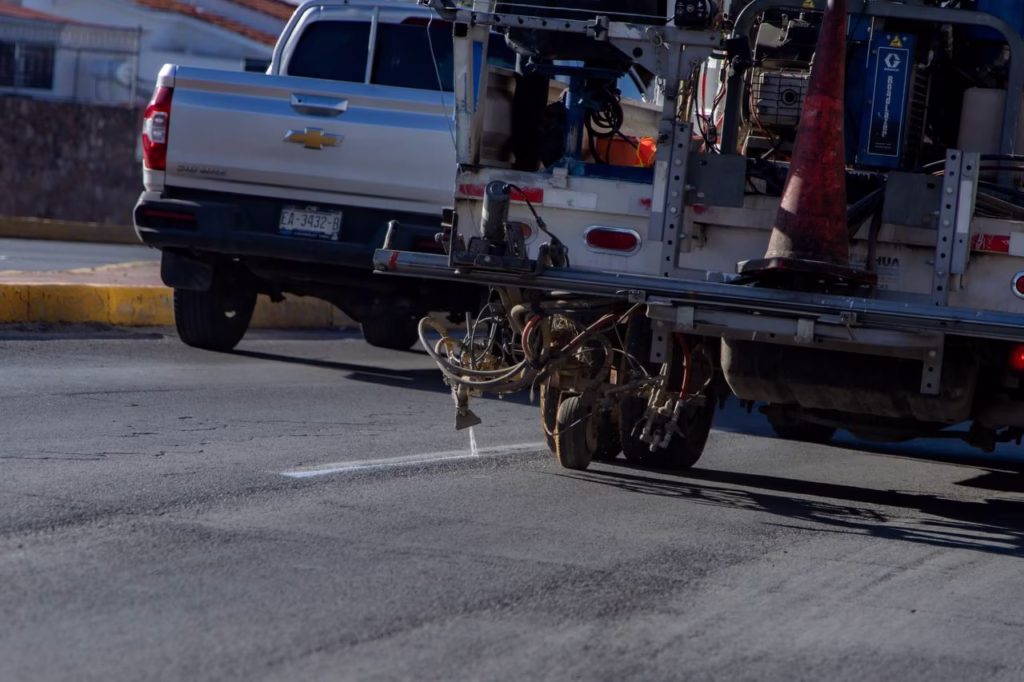 H. Ciudad de Chihuahua, Chih., a 16 de enero de 2026.- La mañana de este viernes, el alcalde Marco Bonilla estuvo supervisando la cuadrilla de bacheo y al personal que realiza el remarcado de carriles en el Politécnico Nacional y boulevard Ortiz Mena.