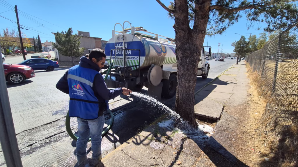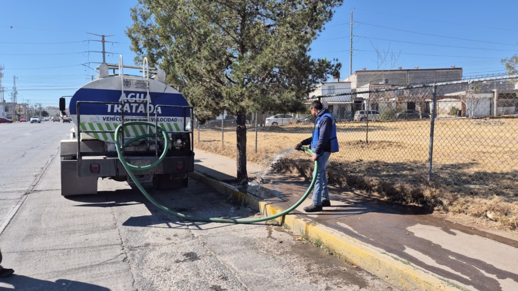 De igual manera, día con día se realiza el riego de más 20 camellones y 100 parques, lo anterior mediante 22 pipas de agua tratada que salen a trabajar desde las 5:00 de la mañana a operar.
