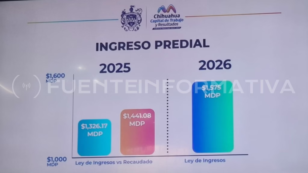 Además, la Tesorería informó que al mes de enero, en la meta del impuesto Predial 2026, gracias a la contribución de los chihuahuenses, se logró un ingreso de 1, 049.7 millones de pesos, superando la meta en 183 millones, lo que representa un 21.2% arriba y equivale al 67% de lo que se debe recaudar durante el año.