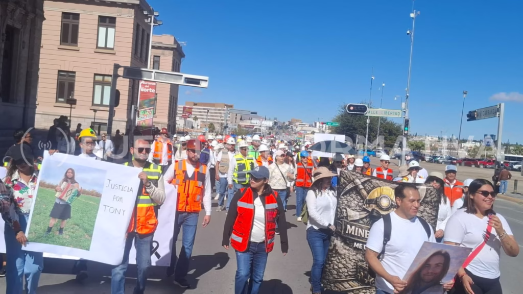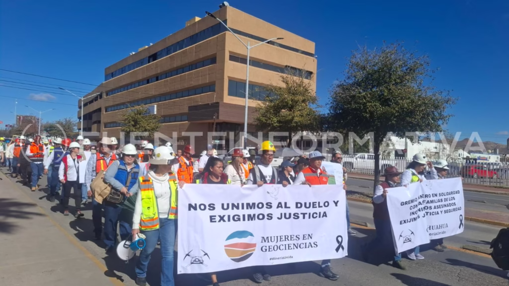 Chihuahua, Chih.- El sector minero se movilizó este sábado en la capital de Chihuahua tras el caso del 23 de enero, cuando 10 trabajadores de una mina en Concordia, Sinaloa, fueron privados de la libertad y posteriormente localizados en una fosa clandestina; entre ellos, los chihuahuenses Jesús Antonio de la O Valdez y Saúl Alberto Ochoa Pérez.