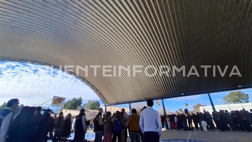 Chihuahua, Chih.- El alcalde Marco Antonio Bonilla Mendoza entregó este lunes un domo construido en la Benemérita y Centenaria Escuela Normal del Estado de Chihuahua, obra seleccionada por estudiantes a través del Presupuesto Participativo.