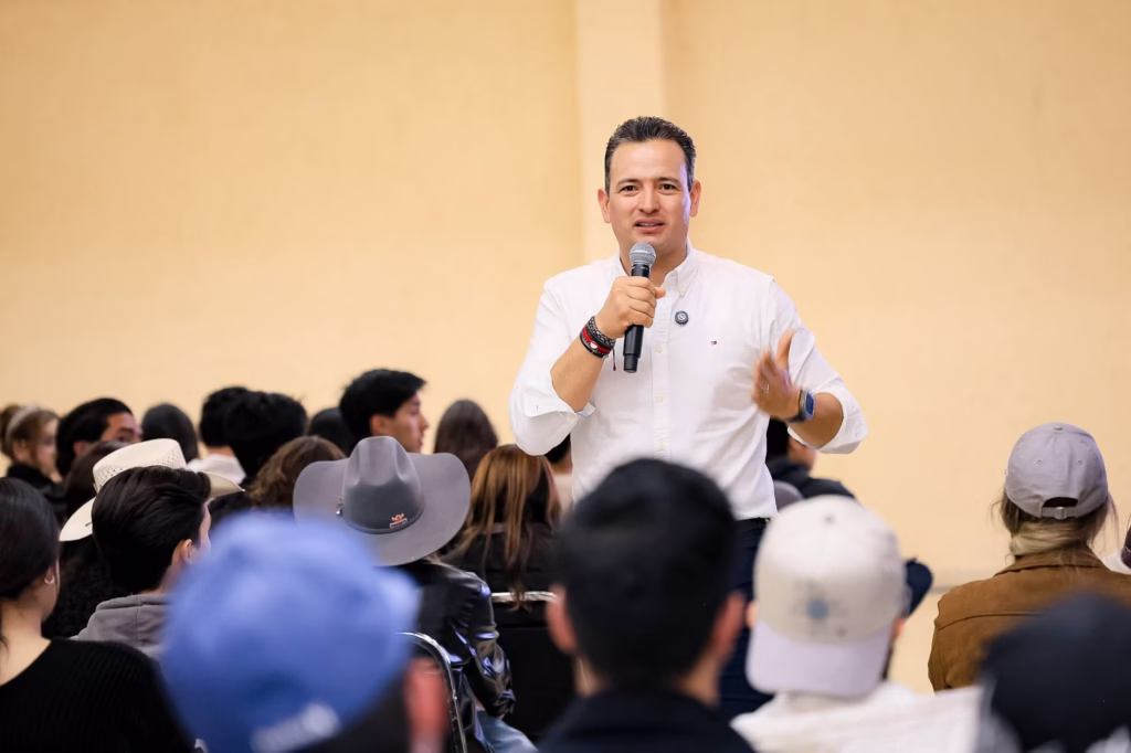 Durante el encuentro, el Presidente Municipal compartió experiencias personales sobre su formación en escuelas públicas y su paso por la UACH, destacando que los sueños pueden concretarse con preparación, disciplina y propósito claro.