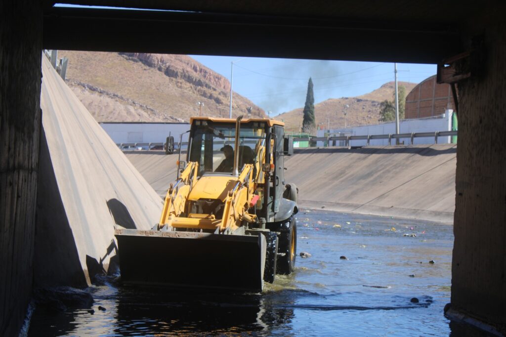 H. Ciudad de Chihuahua, Chih., a 24 de febrero de 2026.- Con el propósito de mantener una buena imagen urbana, el Gobierno Municipal, a través de la Dirección de Servicios Públicos Municipales, trabaja en la limpieza al interior del área canalizada del río Chuviscar.