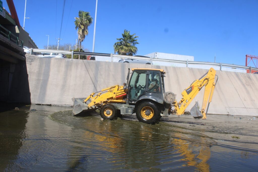 Con maquinaria pesada, así como cuadrillas manuales, se trabaja en la atención y limpieza de este punto, desde la calle María Luisa, hasta su culminación en la vialidad Sacramento.
