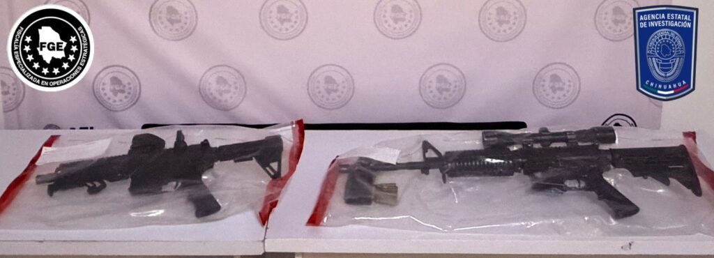 Asimismo, fueron aseguradas dos armas de fuego tipo fusil, ambas de color negro; una de ellas contaba con un cargador metálico abastecido con 10 cartuchos útiles. Las armas fueron debidamente embaladas conforme a los protocolos correspondientes.