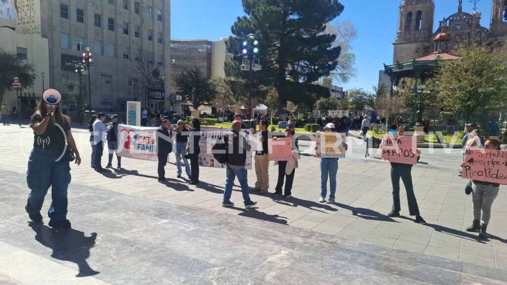 Chihuahua, Chih.- Un grupo de defensores de animales se manifestó la tarde de este miércoles a las afueras de la Presidencia Municipal para denunciar presunta falta de transparencia en la Coordinación de Medio Ambiente y Protección Animal y exigir la destitución de su titular, Rocío Reza.