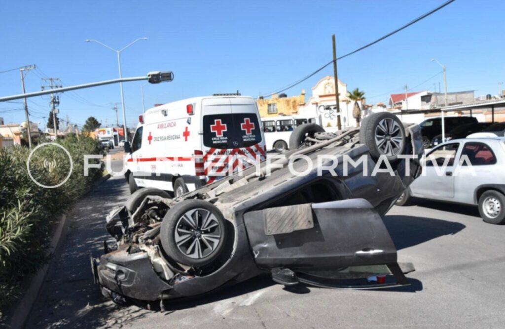 Chihuahua, Chih.– Un fuerte accidente vial se registró la tarde de este día en el cruce de la avenida Paseos del Real y casi avenida Los Portales, en la colonia Villa del Real.