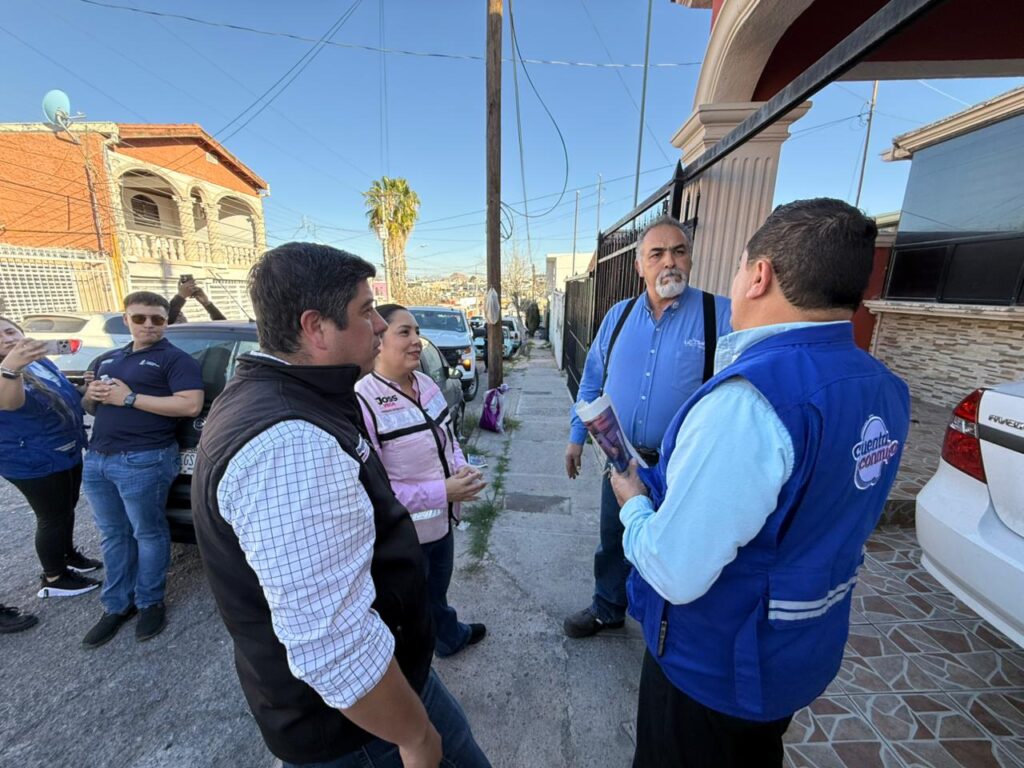 Chihuahua, Chih.- Sumando esfuerzos que permitan fortalecer el cuidado del agua en Chihuahua, la diputada local del Distrito 15, Joss Vega, recorrió en compañía de Alan Falomir, director de la Junta Municipal de Agua y Saneamiento (JMAS), de la diputada Federal, Manque Granados, y el regidor Adán Galicia, la colonia Infonavit Nacional con el Programa Chihuahua sin Fugas.