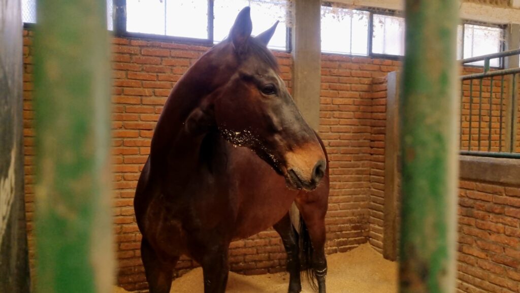 Eligio Castillo, caballerango del grupo, explica que los cuidados van desde la alimentación e hidratación diaria hasta el aseo y cepillado constante. También se realiza el cambio de “cama”, elaborada con aserrín, y se mantiene una observación permanente para detectar a tiempo cualquier lesión, dolor o molestia que deba ser reportada al veterinario.
