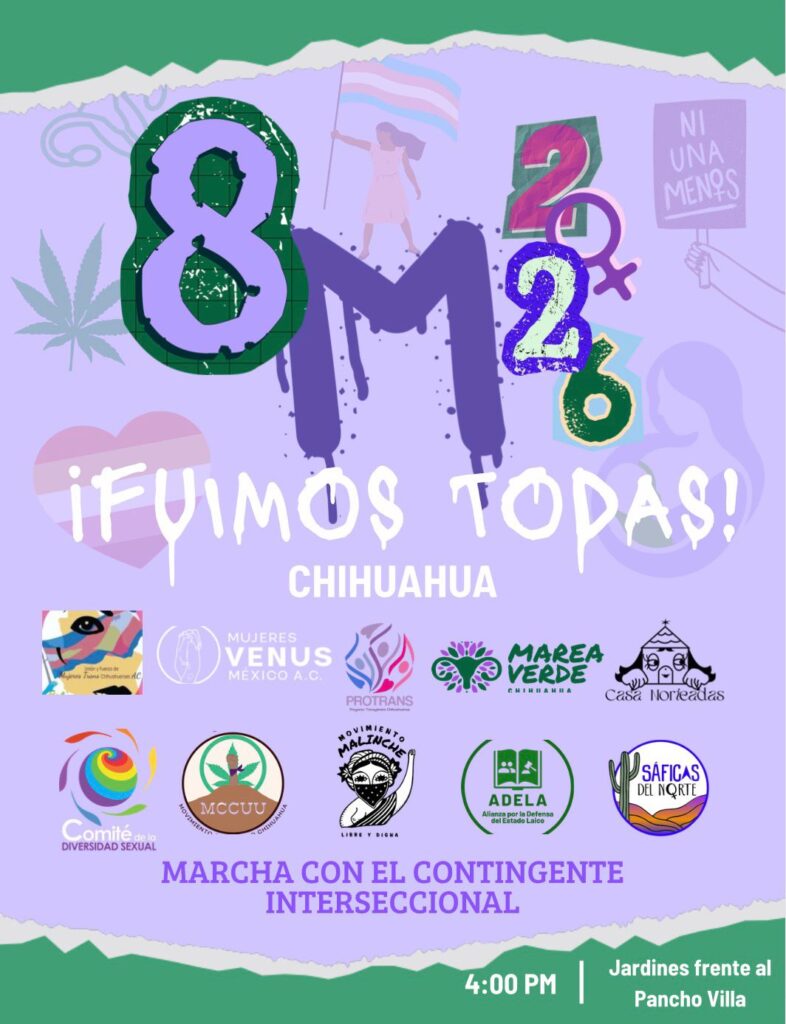 El contingente no marchará solo. Participará junto al Comité de la Diversidad Sexual, Sáficas del Norte, PROTRANS, Alianza por la Defensa del Estado Laico (ADELA), Unión y Fuerza de Mujeres Trans Chihuahuenses A.C., Movimiento Malinche, Marea Verde Chihuahua y Mujeres Venus México A.C., bajo un enfoque incluyente, interseccional, diverso y plural.