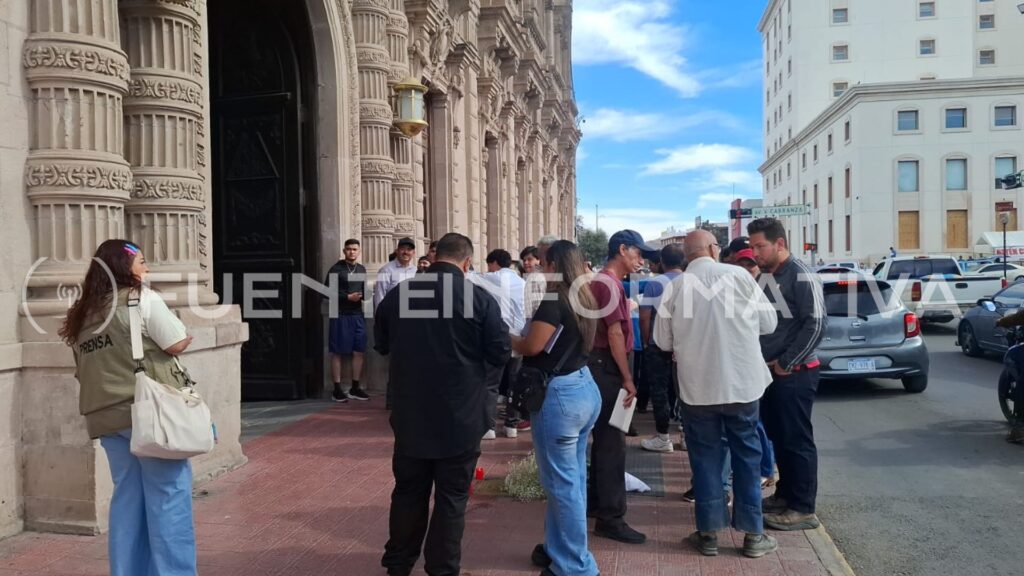 Chihuahua, Chih.- Integrantes de la agrupación Retén Ciudadano se manifestaron este jueves a las afueras de Palacio de Gobierno de Chihuahua para reiterar su solicitud de diálogo con el secretario general de Gobierno, Santiago de la Peña Grajeda, a fin de abordar temas relacionados con planteamientos y demandas sobre el sistema de transporte público.