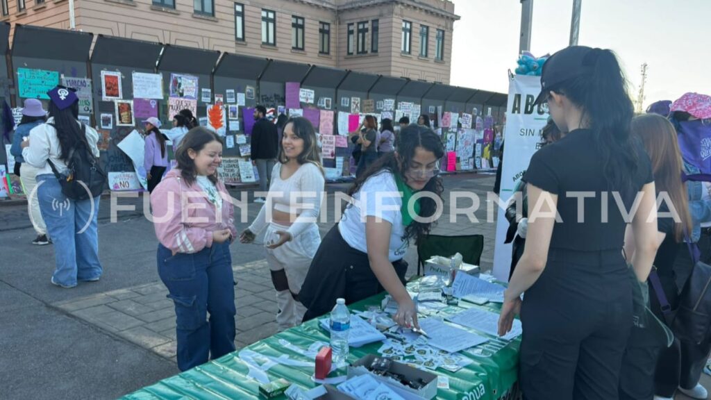 Chihuahua, Chih.- Integrantes de la Red Aborto Seguro Chihuahua instalaron este 8 de marzo un stand informativo durante la manifestación por el Día Internacional de la Mujer en las inmediaciones de la Plaza del Ángel, donde difundieron información sobre la declaratoria de inconstitucionalidad que dejó sin efecto articulos del Código Penal de Chihuahua relacionados con la penalización del aborto.