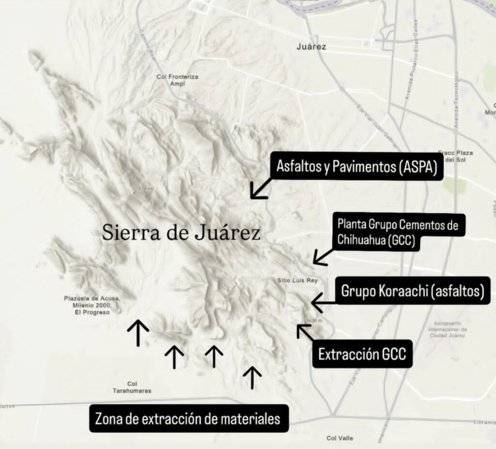 El colectivo también advierte sobre la extracción de materiales pétreos por parte de empresas conocidas como piedreras (entre ellos “Grupo Cementos Chihuahua”). Ray indicó que, tras el uso de estas áreas, en muchos casos permanecen abiertas y sin procesos de restauración ambiental.