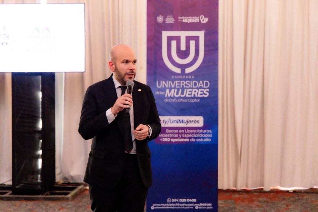H. Ciudad de Chihuahua, Chih., a 12 de marzo de 2026.– El alcalde Marco Bonilla encabezó la entrega de reconocimientos a Rebecca Giovana Cheda, Ana Karen López y Sandra Luz Márquez, quienes se convirtieron en las primeras alumnas en concluir sus especialidades en el programa de la Universidad de las Mujeres, un proyecto impulsado por el Gobierno Municipal para ampliar las oportunidades educativas y profesionales para las chihuahuenses.