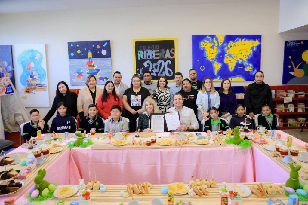 H. Ciudad de Chihuahua, Chih., a 18 de marzo de 2026.- Mediante una firma de convenio con Promesa Educativa para México A.C., el alcalde Marco Bonilla se comprometió con la educación de niñas, niños y adolescentes del Colegio Riberas, para impulsar sus estudios en este espacio que cuenta un alto nivel académico a un costo accesible en beneficio de las familias que viven al norte de la ciudad.