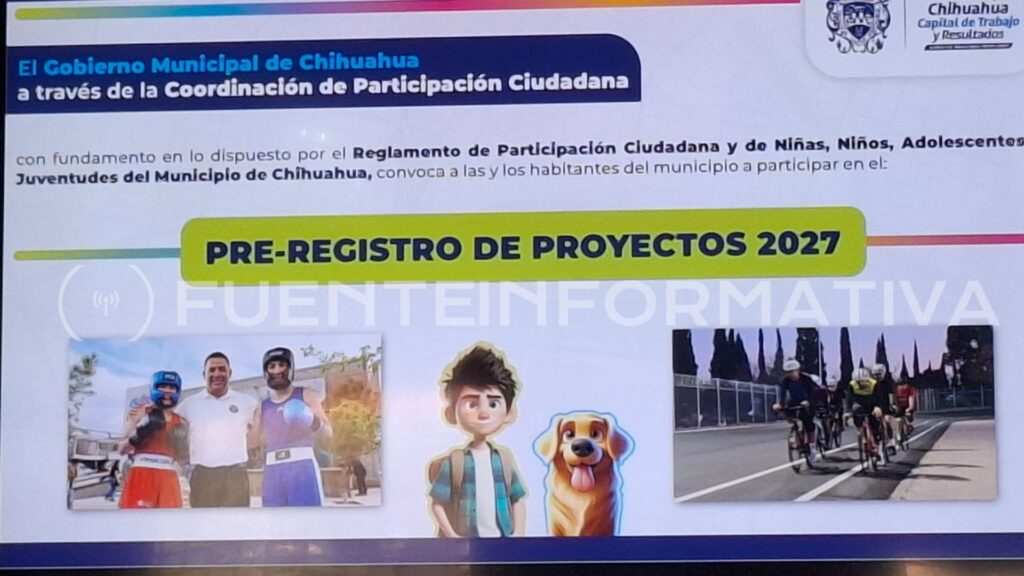 Chihuahua, Chih.- Esta mañana, en rueda de prensa, el Municipio anunció el arranque de un preregistro para proyectos del Presupuesto Participativo 2026, con el objetivo de facilitar la participación ciudadana y mejorar la preparación de las propuestas.