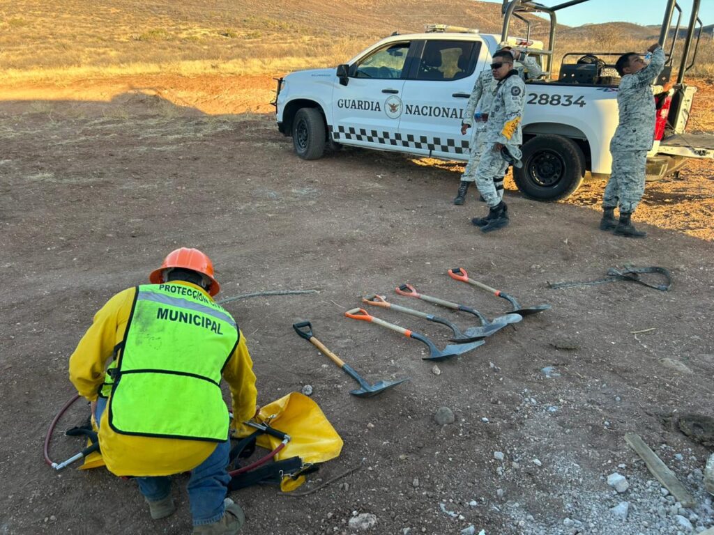 En las labores de atención participaron de manera coordinada 9 elementos de la Coordinación Municipal de Protección Civil, 4 brigadistas de Desarrollo Forestal Estatal y 12 elementos de la Guardia Nacional, quienes trabajaron de forma conjunta para contener el siniestro.