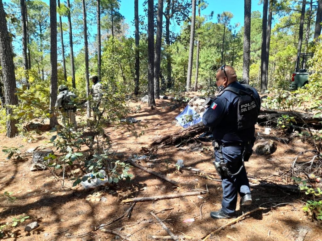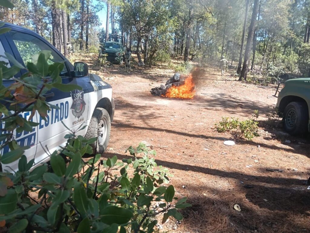 Guadalupe y Calvo, Chih.- La Secretaría de Seguridad Pública del Estado (SSPE) informó sobre la destrucción de campamentos presuntamente utilizados por civiles armados en la localidad de Encino Gordo, como parte de los operativos de vigilancia y prevención en la región.