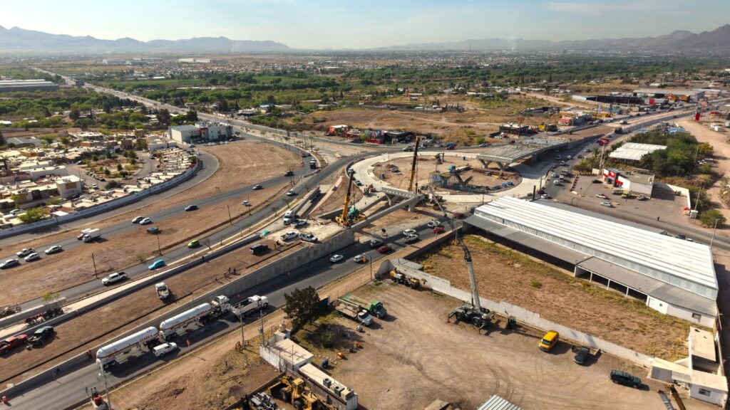 H. Ciudad de Chihuahua, Chih., a 30 de marzo de 2026.- Con el objetivo de continuar con la conformación de la superestructura del Paso Superior que brindará mayor agilidad vial en el cruce de la carretera Chihuahua-Aldama y la avenida Fuerza Aérea, el Gobierno Municipal, a través de la Dirección de Obras Públicas, avanza con el montaje de trabes.