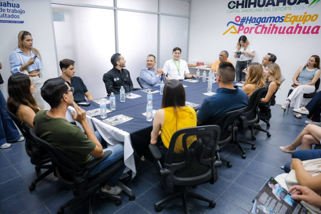 H. Ciudad de Chihuahua, Chih., a 31 de marzo de 2026.- El alcalde de Chihuahua, Marco Bonilla, se reunió con atletas y entrenadores beneficiarios de “Meta Olímpica CUU”, para reconocer su esfuerzo y ser parte de esta iniciativa del Gobierno Municipal que busca darles seguimiento para que puedan llegar a los Juegos Olímpicos Los Ángeles 2028.